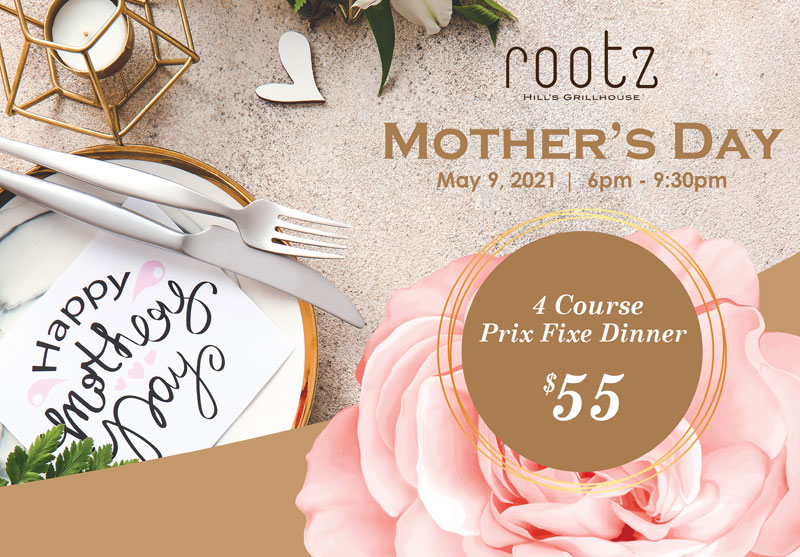 Celebrate mom for all she does and all that she is. She deserves the best at Rootz Hill’s Grillhouse,